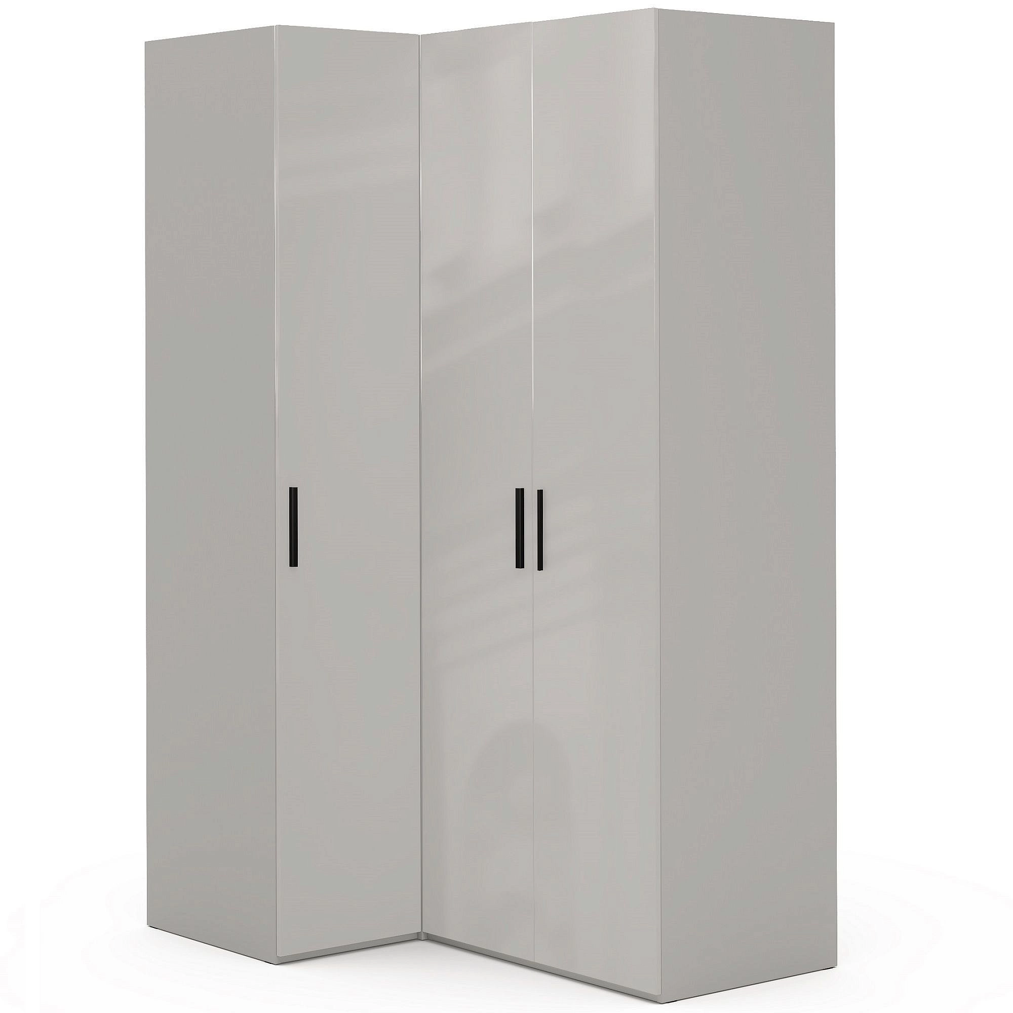 Описание: Чтобы эффективно использовать пространство при обустройстве любого помещения, мы подобрали для вас готовое решение углового шкафа из двух модулей – углового и двухдверного шкафа. Глубокий шкаф с распашными фасадами выделяется своей практичностью и удобной формой конструкции, гармонично сочетается с другими изделиями данной коллекции, создавая единую стилистическую композицию, или может использоваться как самостоятельный элемент интерьера. В угловом модуле и двухдверном шкафу предусмотрены продольные штанги для одежды на вешалках и по две полки для хранения любых вещей. Чтобы адаптировать внутреннее пространство шкафов к вашим потребностям, установите в них дополнительные полки, выдвижные ящики для двухдверного шкафа или ещё одну штангу. Дополнительная подсветка шкафов поможет найти все необходимое даже в самом дальнем углу. Угловой шкаф можно собрать на левую или правую сторону. Глянцевые фасады с превосходным качеством поверхности, стойкой к ультрафиолетовому излучению, создают иллюзию большого пространства и визуально меняют архитектуру комнаты. Двери оснащены петлями с доводчиками с функцией плавного и бесшумного открывания/закрывания. Ручки черные с матовой поверхностью, на которой не остаётся следов, они надолго сохранят безупречный внешний вид.