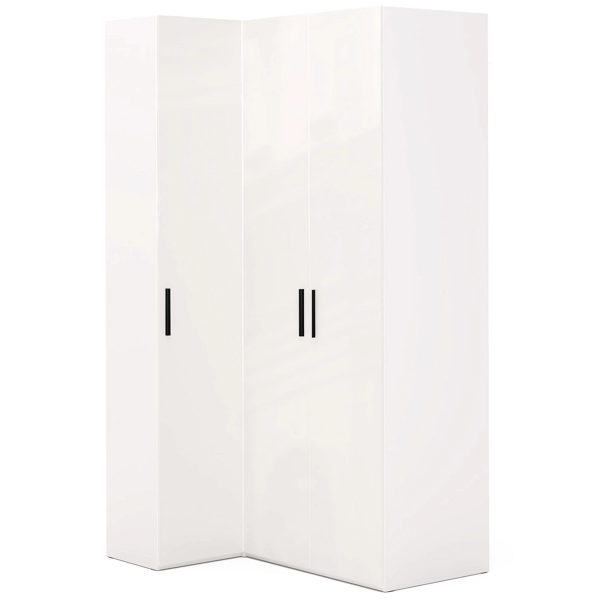 Описание: Чтобы эффективно использовать пространство при обустройстве любого помещения, мы подобрали для вас готовое решение углового шкафа из двух модулей – углового и двухдверного шкафа. Шкаф с распашными фасадами выделяется своей практичностью и ;удобной формой конструкции, гармонично сочетается с другими изделиями данной коллекции, создавая единую стилистическую композицию, или может использоваться как самостоятельный элемент интерьера. В угловом модуле пять полок, внутри глубокого двухдверного шкафа предусмотрены продольная штанга для одежды на вешалках и две полки для хранения любых вещей. Чтобы адаптировать внутреннее пространство двухдверного глубокого шкафа к вашим потребностям, установите в нем дополнительные полки, выдвижные ящики или ещё одну штангу. Дополнительная подсветка двухдверного шкафа поможет найти все необходимое даже в самом дальнем углу. Угловой шкаф можно собрать на левую или правую сторону. Глянцевые фасады с превосходным качеством поверхности, стойкой к ультрафиолетовому излучению, создают иллюзию большого пространства и визуально меняют архитектуру комнаты. Двери оснащены петлями с доводчиками с функцией плавного и бесшумного открывания/закрывания. Ручки черные с матовой поверхностью, на которой не остаётся следов, они надолго сохранят безупречный внешний вид.
